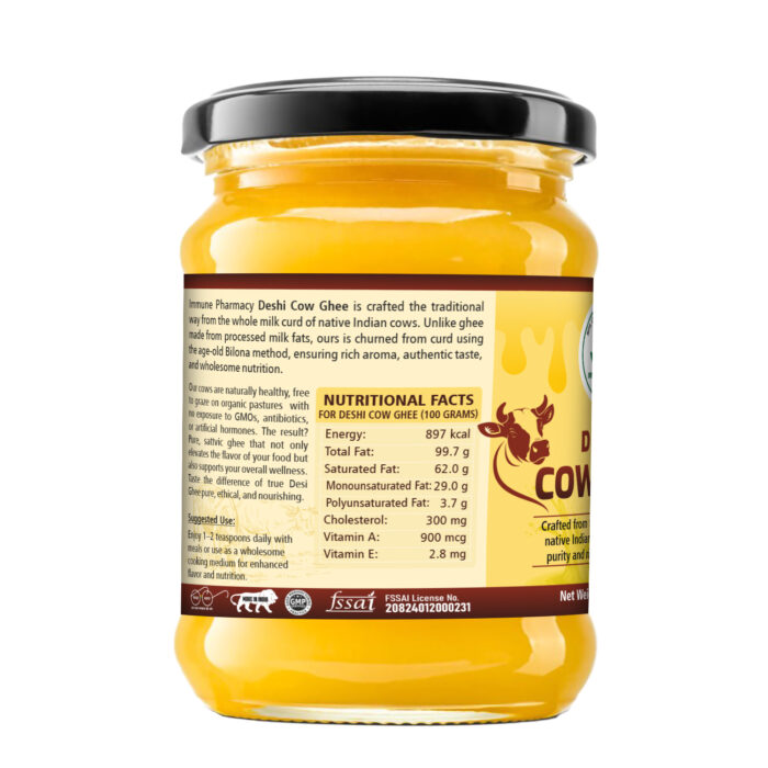 Crafted from the whole milk curd of native Indian cows using the traditional Bilona method for purity, taste, and wellness.