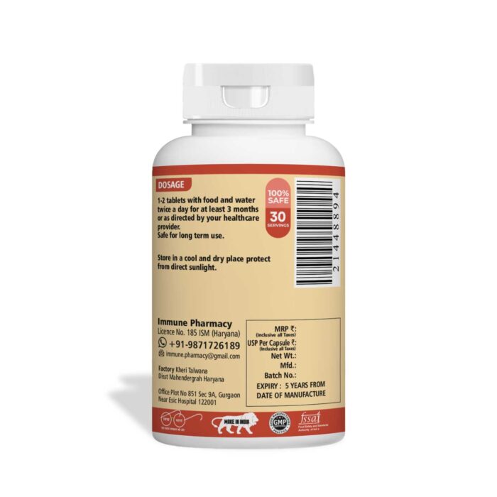 Dosage: 1-2 tablets with food and water, twice daily for at least 3 months or as directed by your healthcare provider